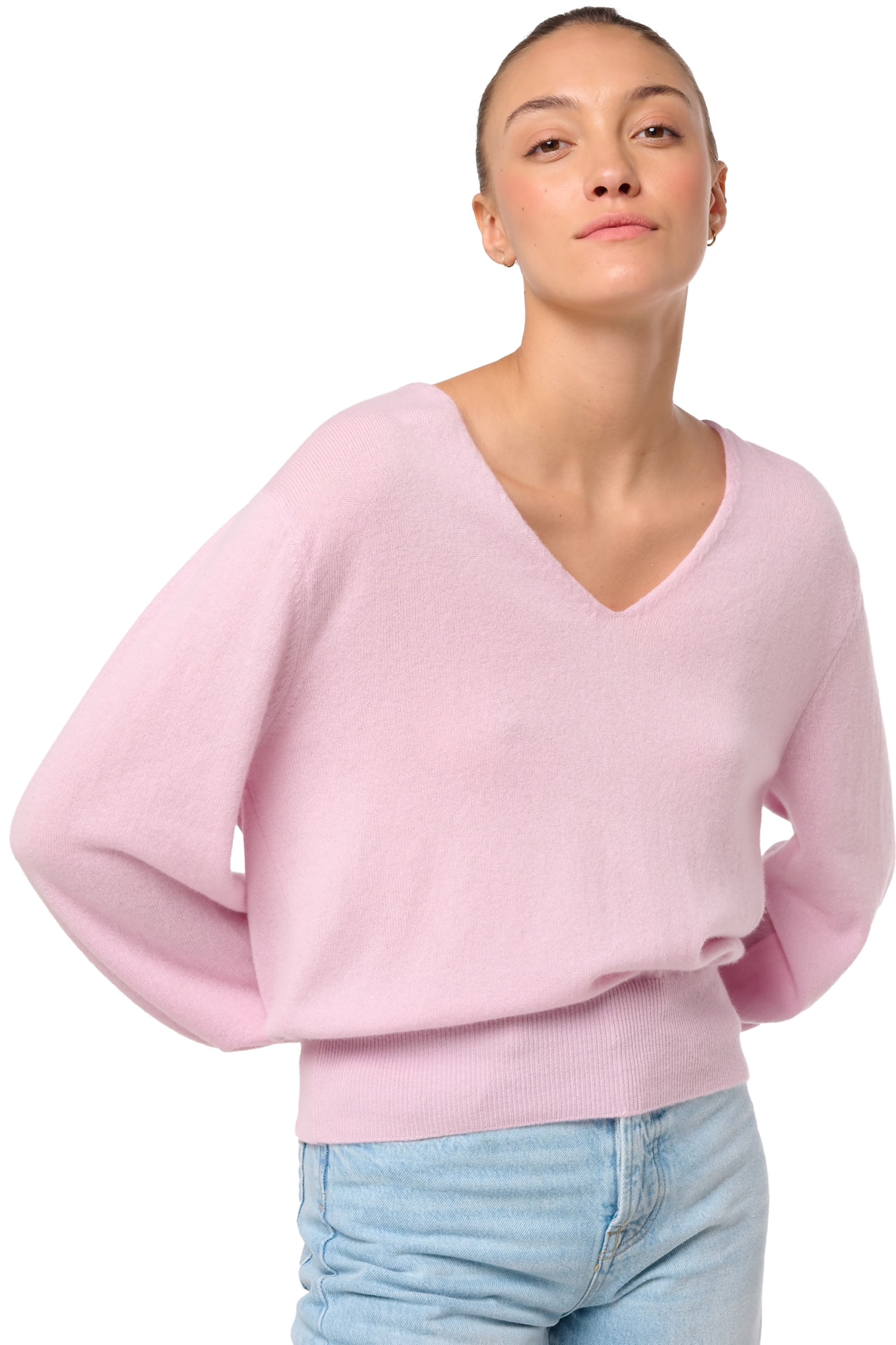 V-Ausschnitt-Pullover mit Ballonärmeln aus 100 % Kaschmir – Eleganz trifft auf Schlichtheit! Unser neuer Pullover DEAUVILLE ist eine starke, aber einfach zu tragende Kreation, die durch Ballonärmel, einen schlichten Halsausschnitt und dekorative Rückendetails besticht. Ideal, um deinen Stil diesen Winter ganz in Kaschmir zu betonen.