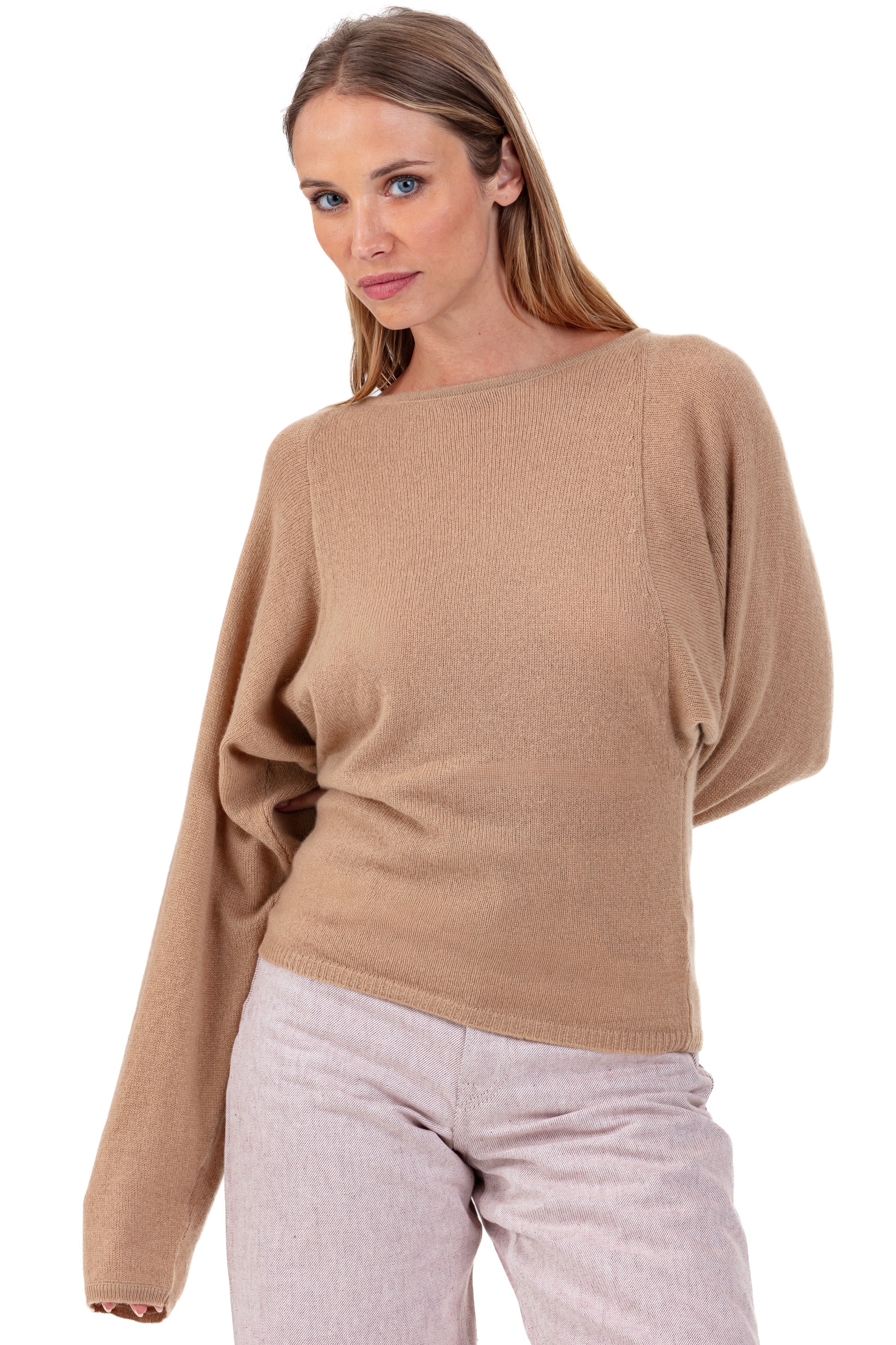 Der leichte und moderne Kaschmirpullover PALERMO für Damen besticht durch seine körperbetonte Passform und die eleganten Fledermausärmel.