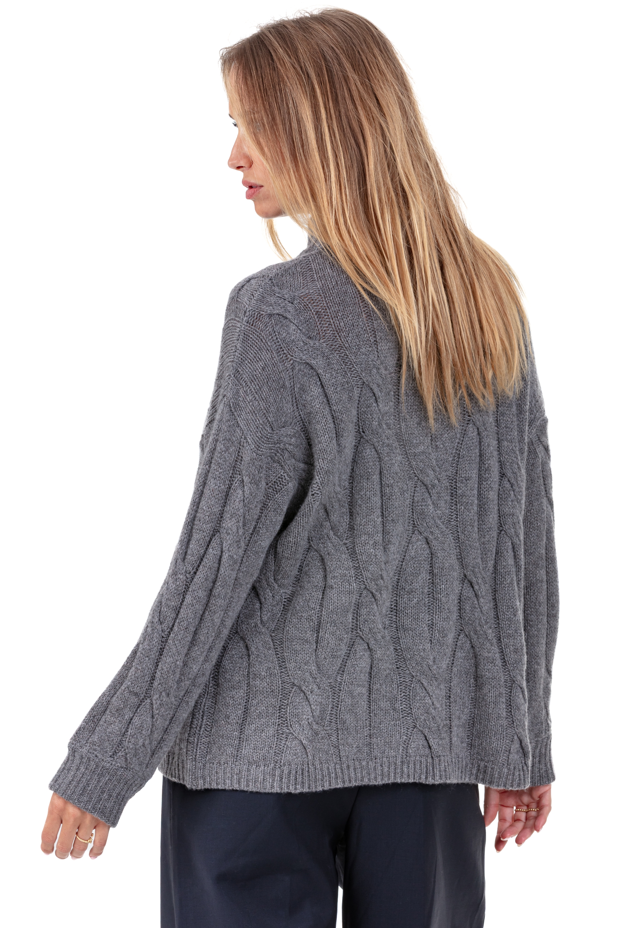 Der leichte und stilvolle Damenpullover PENNY aus Kaschmir besticht durch sein durchgehendes Zopfmuster und seinen Oversize-Schnitt. Er ist aus 100 % Kaschmir (6-fädig) gestrickt und in lockerer Maschenweite in Maschenstärke 7 angefertigt, wodurch er luftig und bequem ist. Sein Stehkragen und sein Gewicht von 335 g Kaschmir machen ihn zu einem idealen Kleidungsstück für kühle Tage.