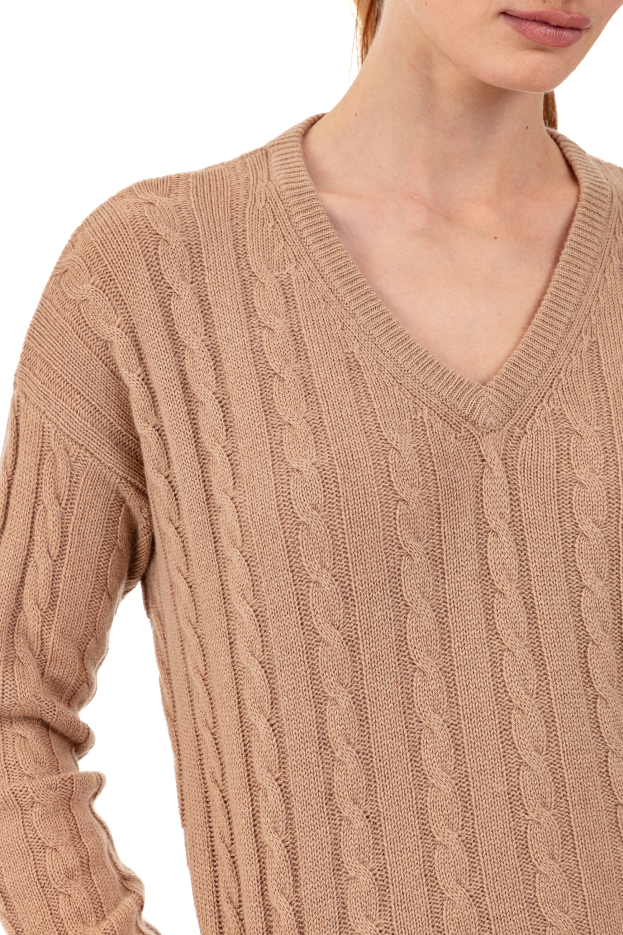 • Details: V-Ausschnitt, durchgehendes Zopfmuster