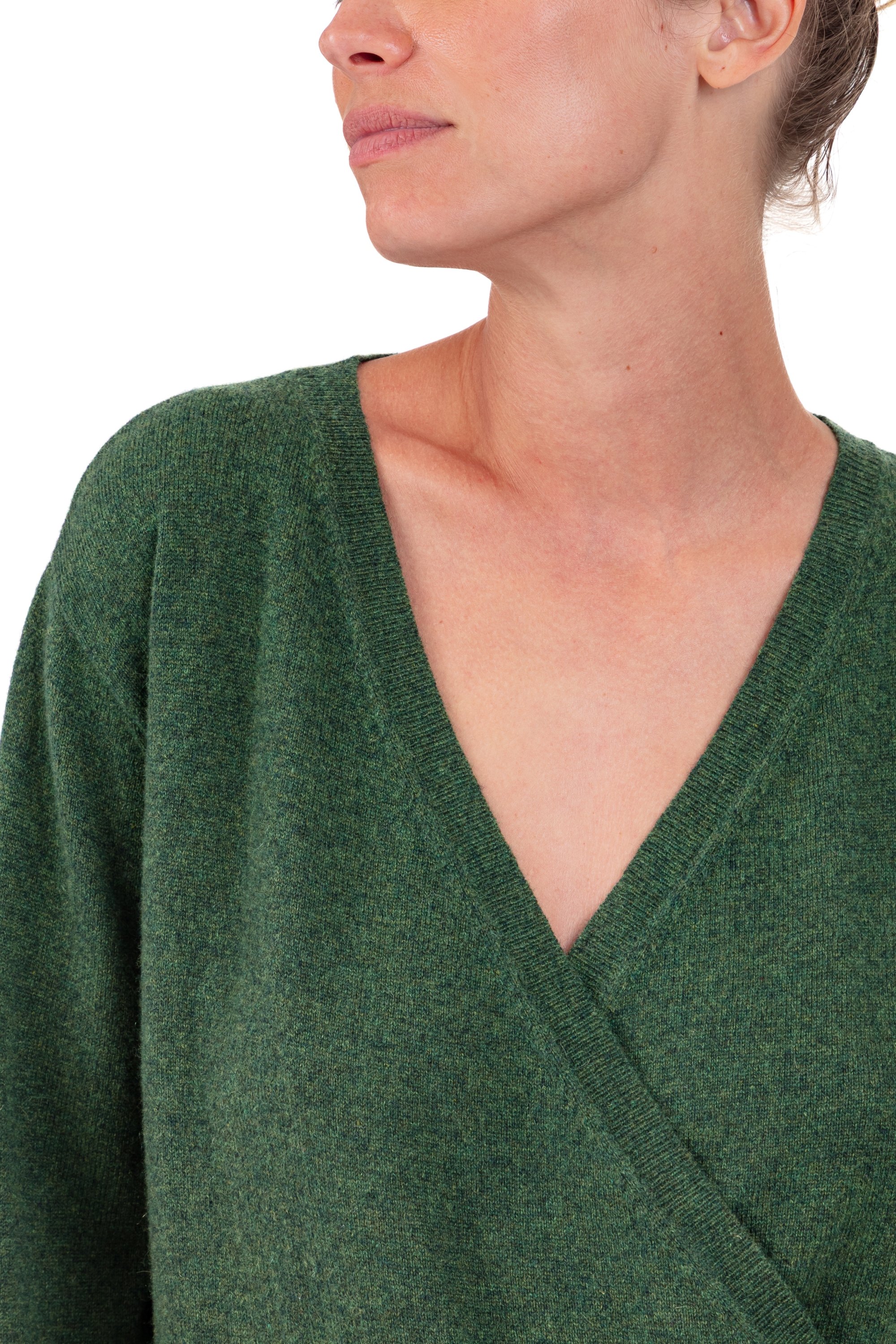 • Dieser Wickelpullover aus Kaschmir passt perfekt zu einem hoch taillierten Rock oder einer eleganten Hose und verleiht einen schicken, femininen Look. Er kann auch zu Jeans getragen werden, um einen lässigeren Stil zu erzielen, ohne dabei an natürlicher Eleganz einzubüßen.