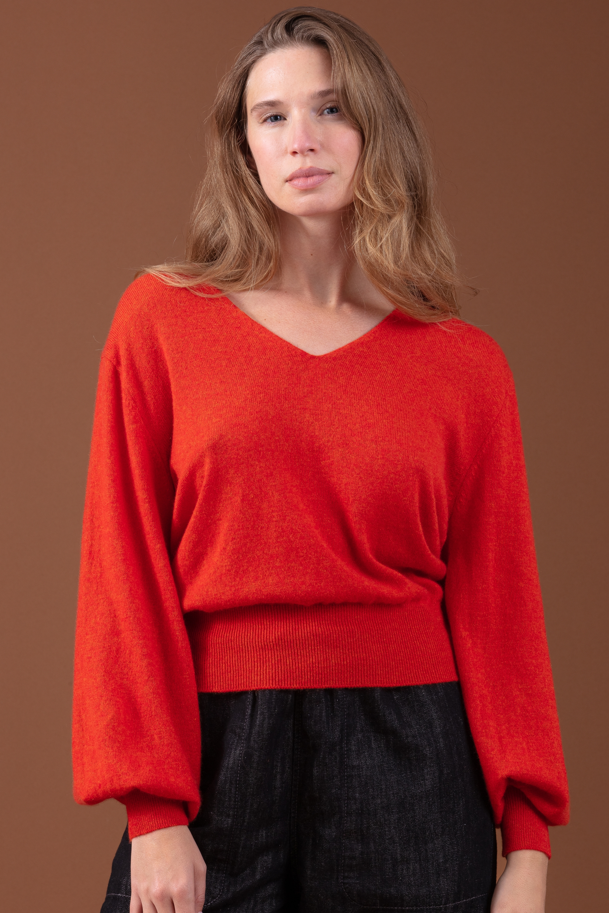 V-Ausschnitt-Pullover mit Ballonärmeln aus 100 % Kaschmir – Eleganz trifft auf Schlichtheit! Unser neuer Pullover DEAUVILLE ist eine starke, aber einfach zu tragende Kreation, die durch Ballonärmel, einen schlichten Halsausschnitt und dekorative Rückendetails besticht. Ideal, um deinen Stil diesen Winter ganz in Kaschmir zu betonen.