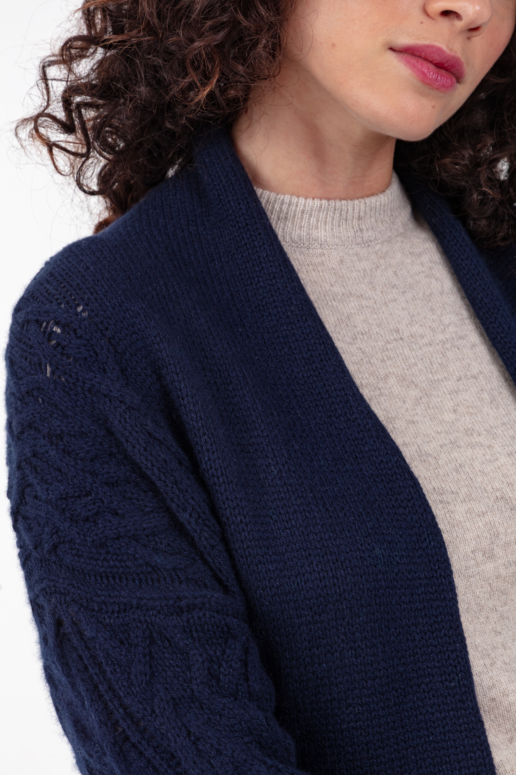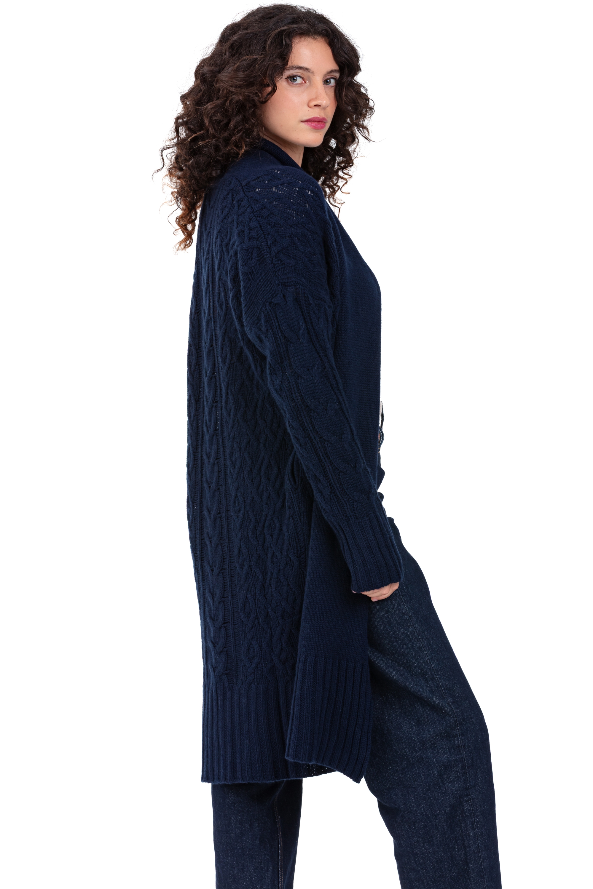 Die spektakuläre und anschmiegsame Damenstrickjacke PHILOSOPHY aus Kaschmir ist ein außergewöhnliches Kleidungsstück. Sie ist aus 100 % Kaschmir (8-fädig) in lockerer Maschenweite gestrickt und besticht durch ihren Schalkragen, ihre Maxilänge und ihre durchgehenden Zopfmuster. Da sie keinen Verschluss hat, lässt sie sich leicht wie ein leichter, eleganter Mantel überziehen.
