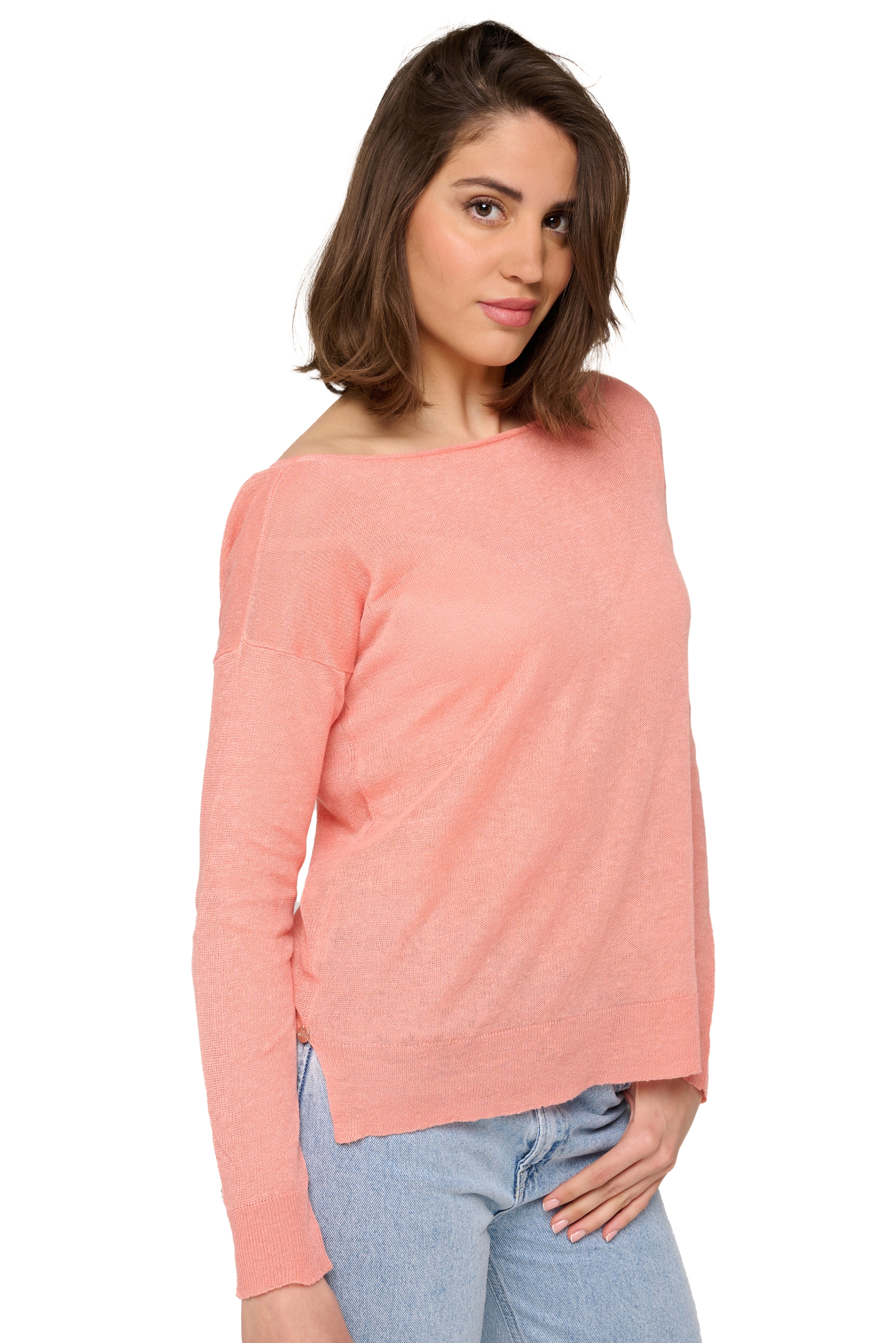Leichter Pullover aus Leinen mit U-Boot-Ausschnitt. Der Pullover kann von beiden Seiten getragen we... Mehr erfahren