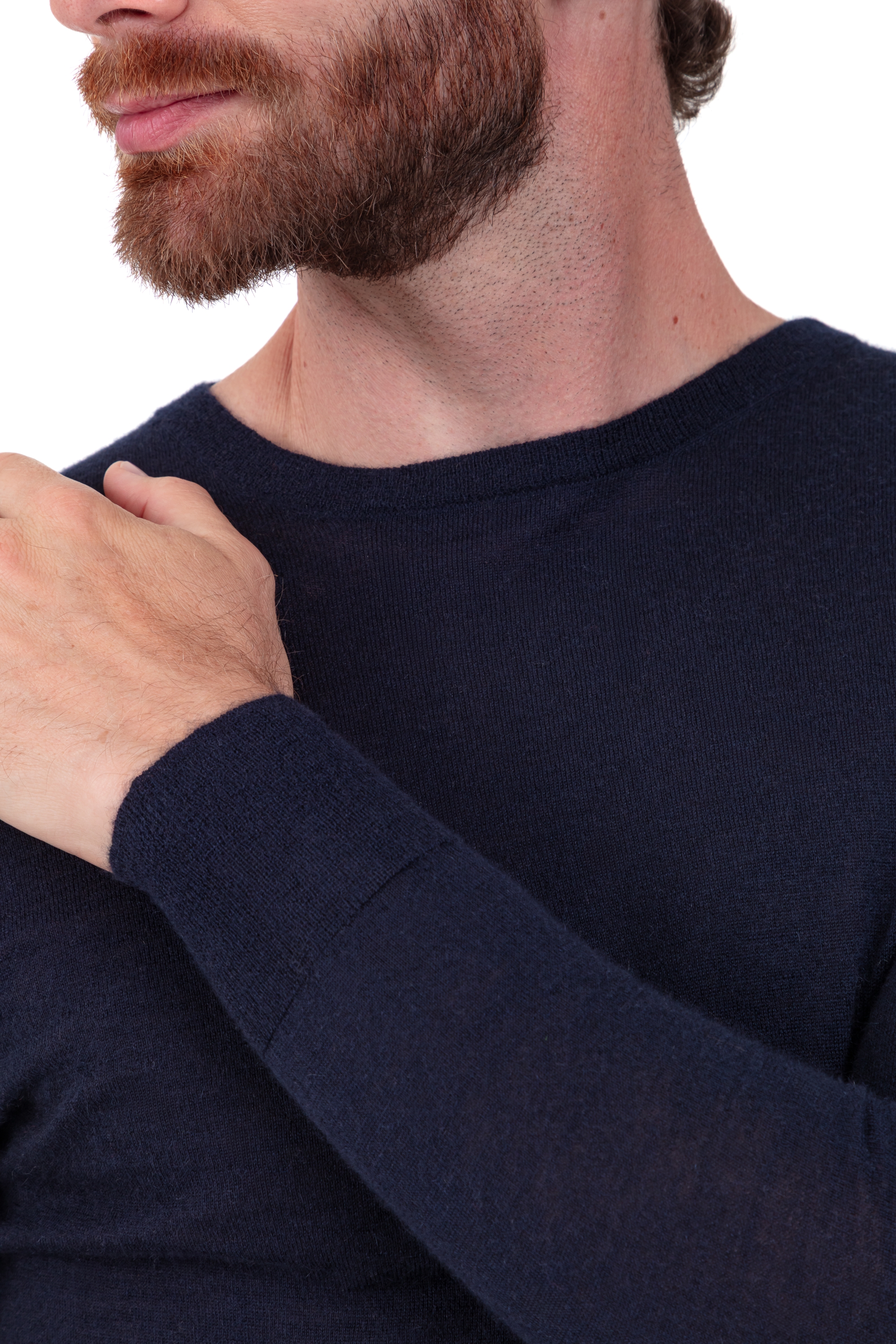 Fein und elegant, der Herrenpullover PIER aus Kaschmirunterwolle vereint Komfort und Raffinesse. Gestrickt aus 100 % 2-fädigen Kaschmirunterwolle, zeichnet er sich durch einen körpernahen Schnitt und einen klassischen Rundhalsausschnitt aus.