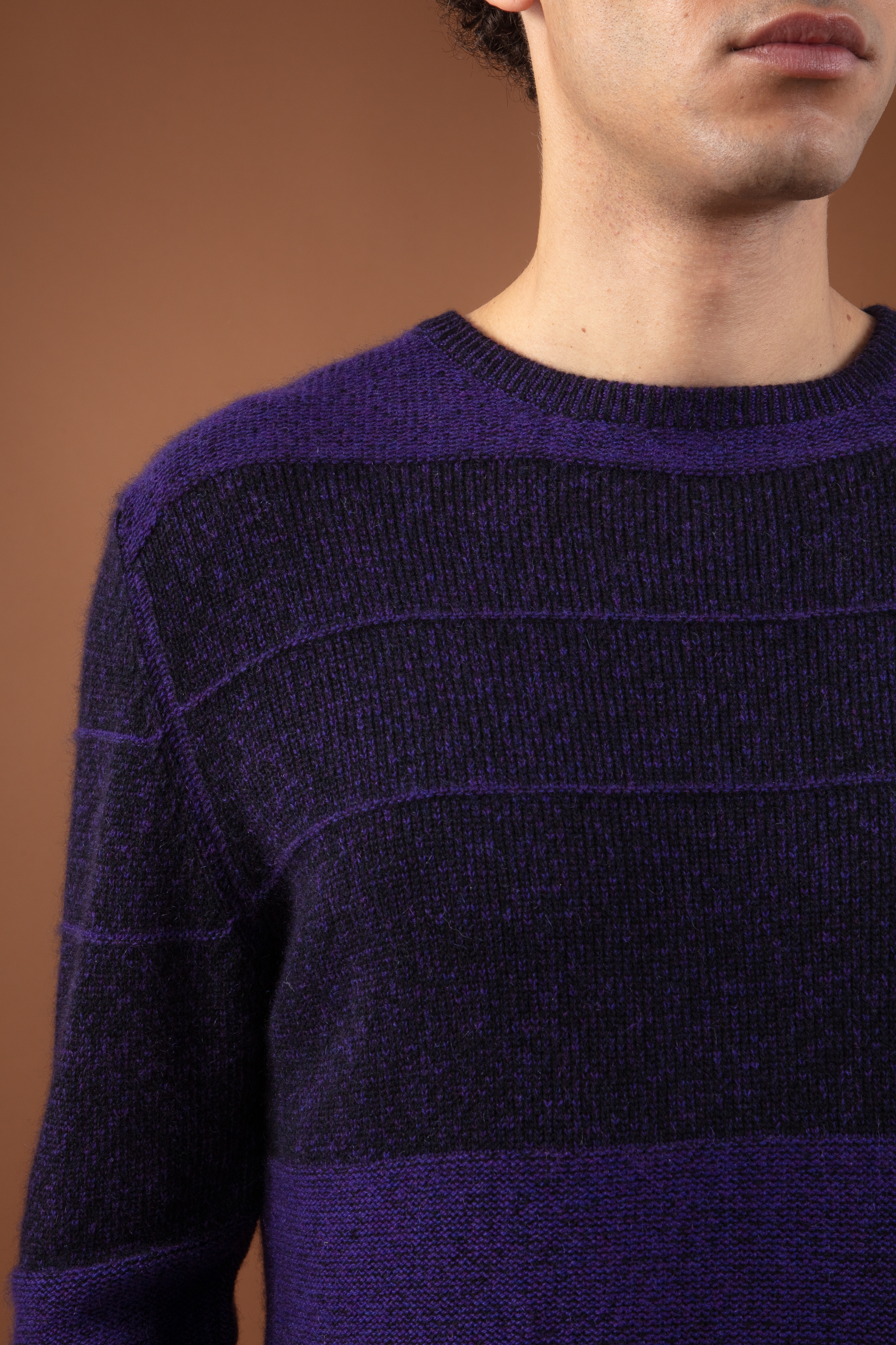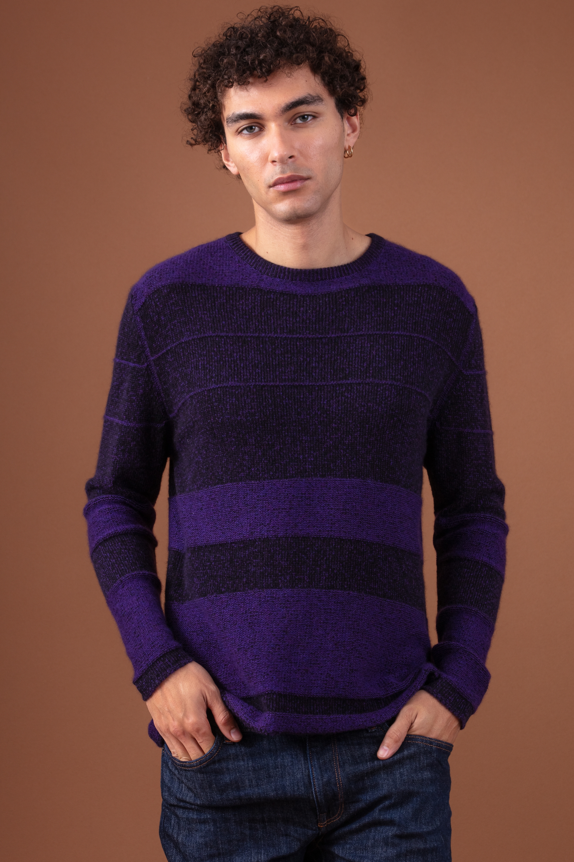 Der Pullover Racine zeichnet sich durch sein subtiles Spiel mit Texturen aus: Die Reliefstreifen, die durch abwechselndes Stricken auf der rechten und linken Seite entstehen, sorgen für einen dezenten grafischen Effekt und unterstreichen gleichzeitig den schlichten und maskulinen Look.