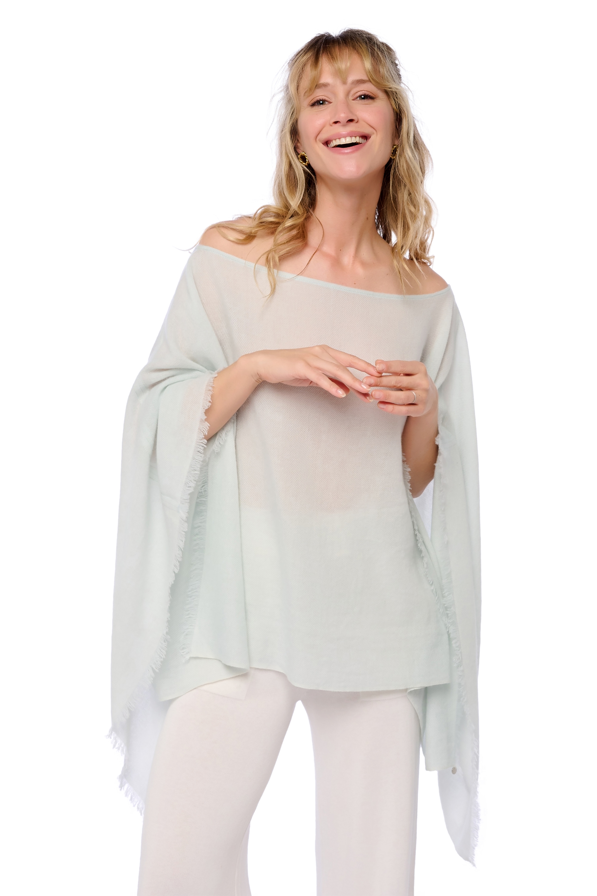 Wenn Eleganz auf Weichheit trifft: gewebter Poncho aus 2-fädigem Cashmere.