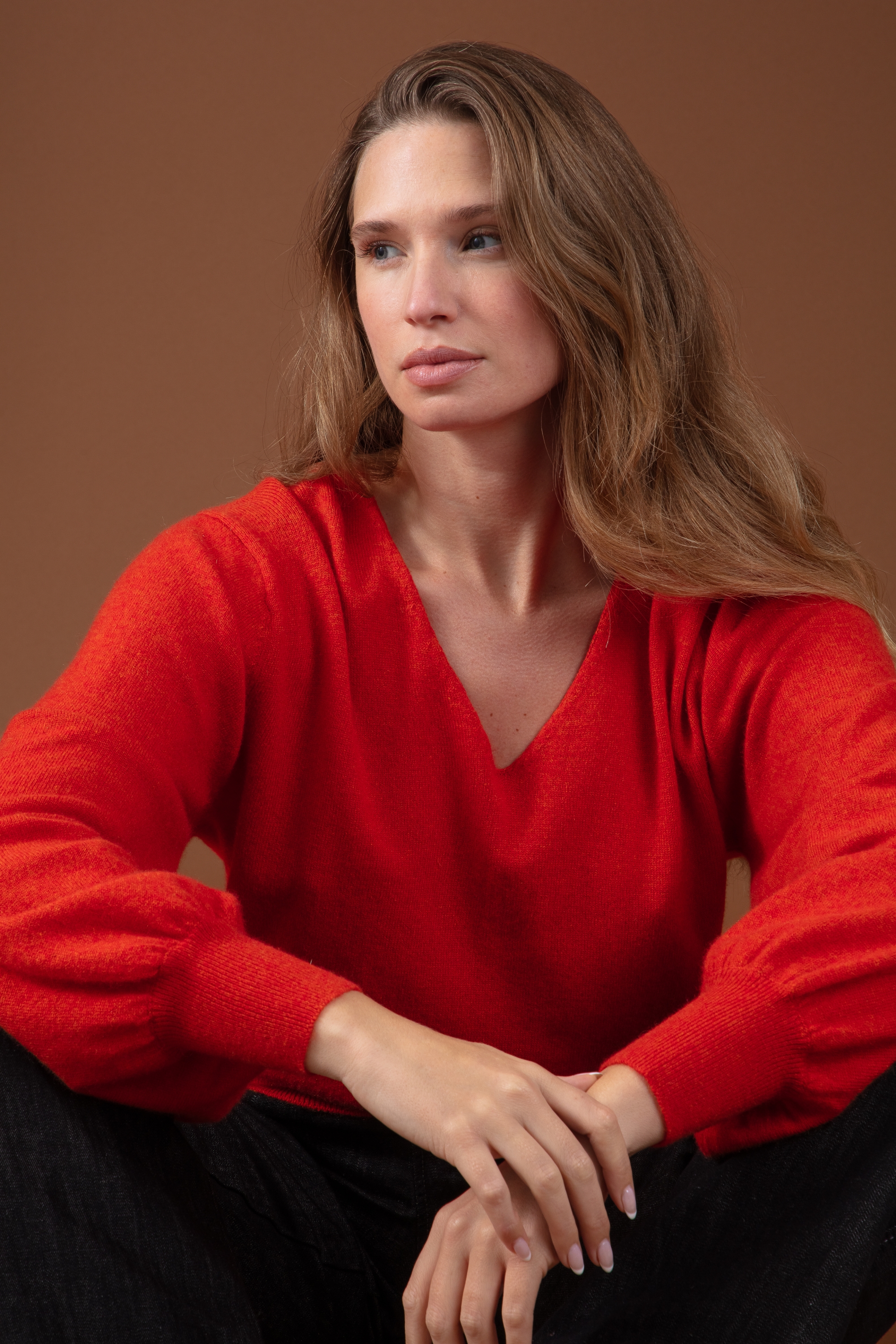 V-Ausschnitt-Pullover mit Ballonärmeln aus 100 % Kaschmir – Eleganz trifft auf Schlichtheit! Unser neuer Pullover DEAUVILLE ist eine starke, aber einfach zu tragende Kreation, die durch Ballonärmel, einen schlichten Halsausschnitt und dekorative Rückendetails besticht. Ideal, um deinen Stil diesen Winter ganz in Kaschmir zu betonen.