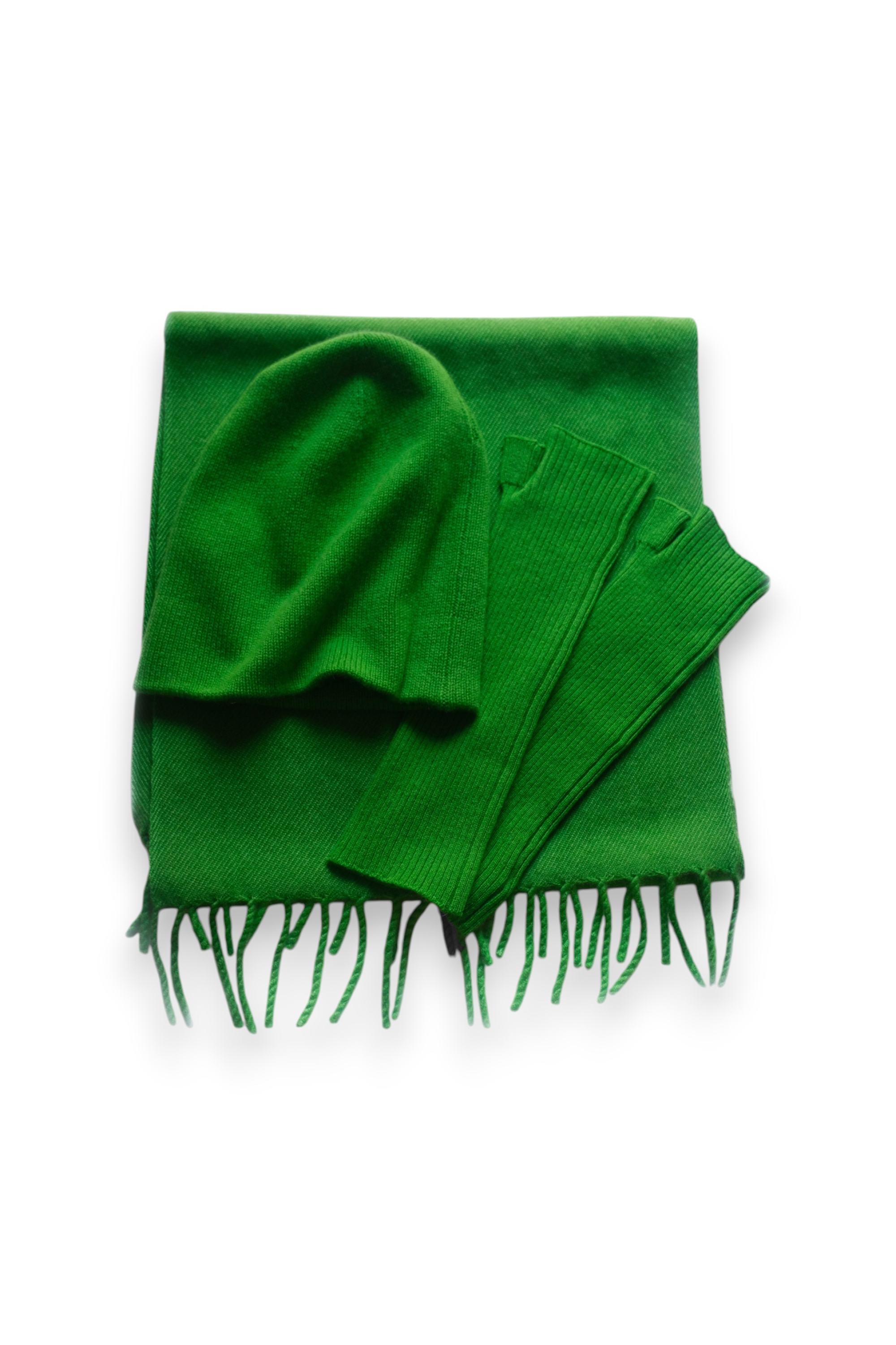 Accessoire-Set aus 100 % Kaschmir, bestehend aus dem Schal REVE (6-fädig gewebt), den Handschuhen RAIN (2-fädig gerippt) und der Mütze DONNA (4-fädig) – die perfekte Kombination gegen die Winterkälte. Zum Verschenken oder sich selbst schenken!