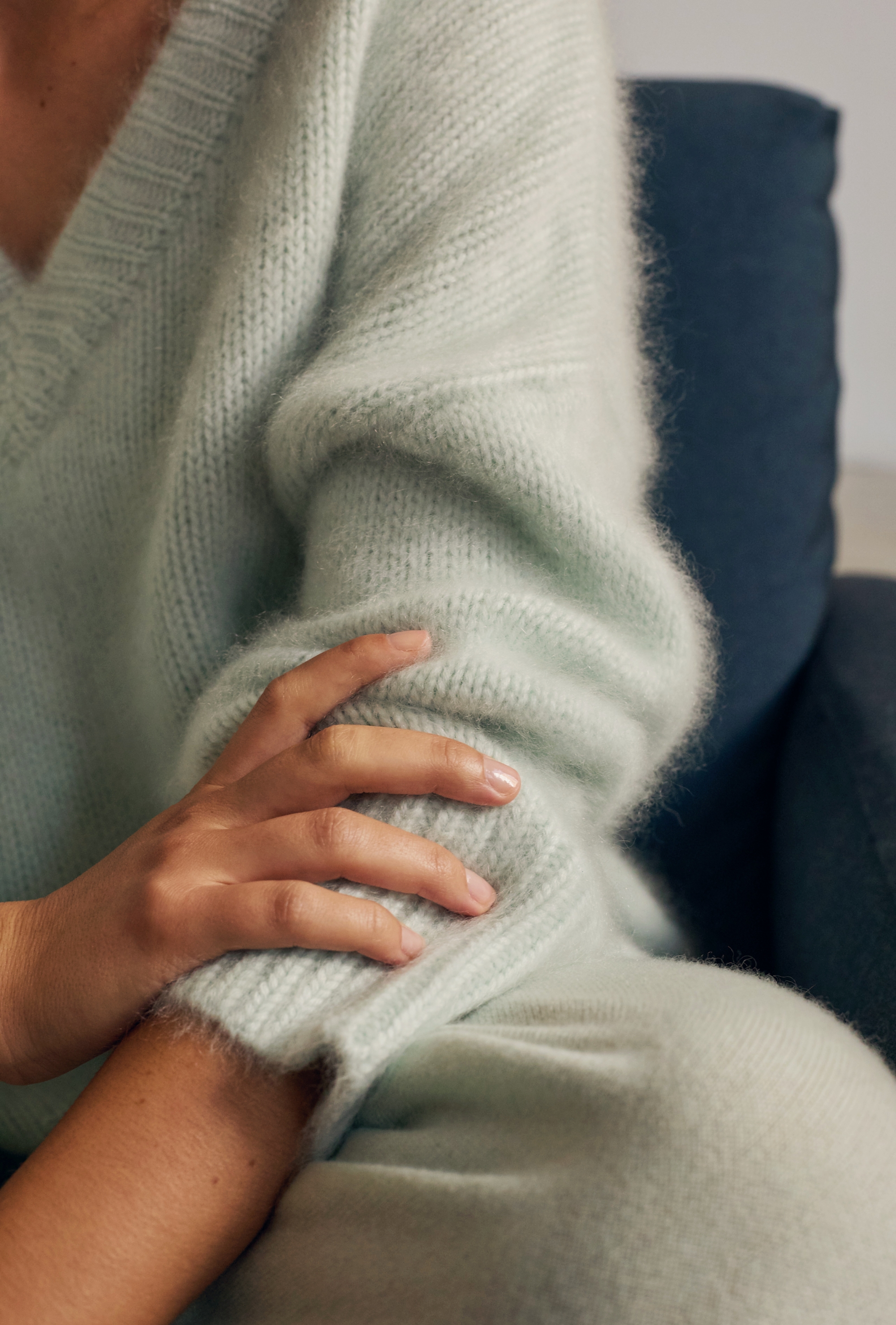 Der warme und anschmiegsame Pullover PAMELA aus gebürsteter Kaschmir ist ein Highlight der Winterga... Mehr erfahren