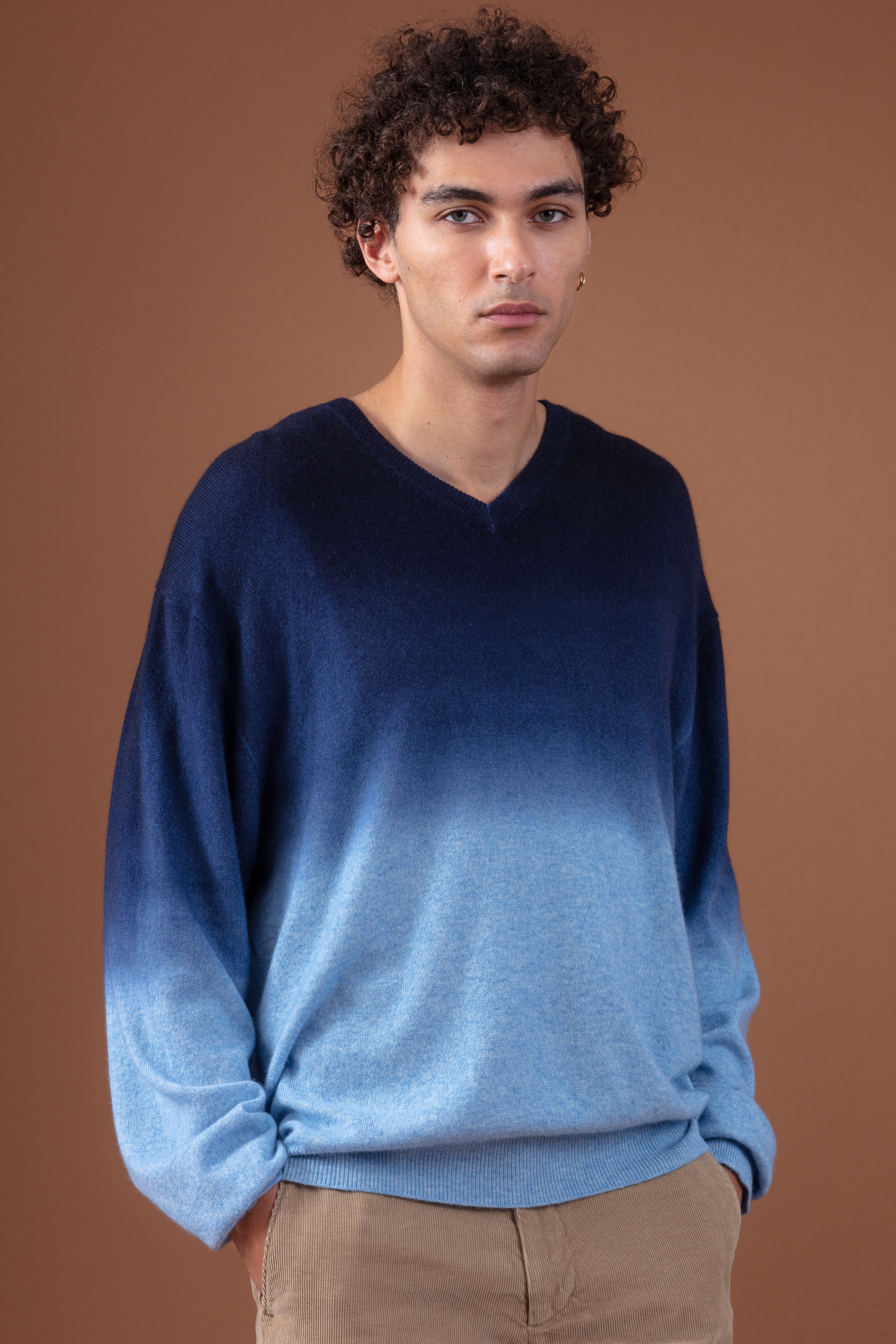 Pullover mit V-Ausschnitt und verlaufendem Print im Tie & Dye-Stil. Ein trendiger Cashmere-Pullover, den Sie ohne Einschränkung tragen können! Entdecken Sie unsere Farbversionen, die wir uns sorgfältig ausgedacht haben, um Ihnen originelle, aber leicht zu tragende Modelle anzubieten.