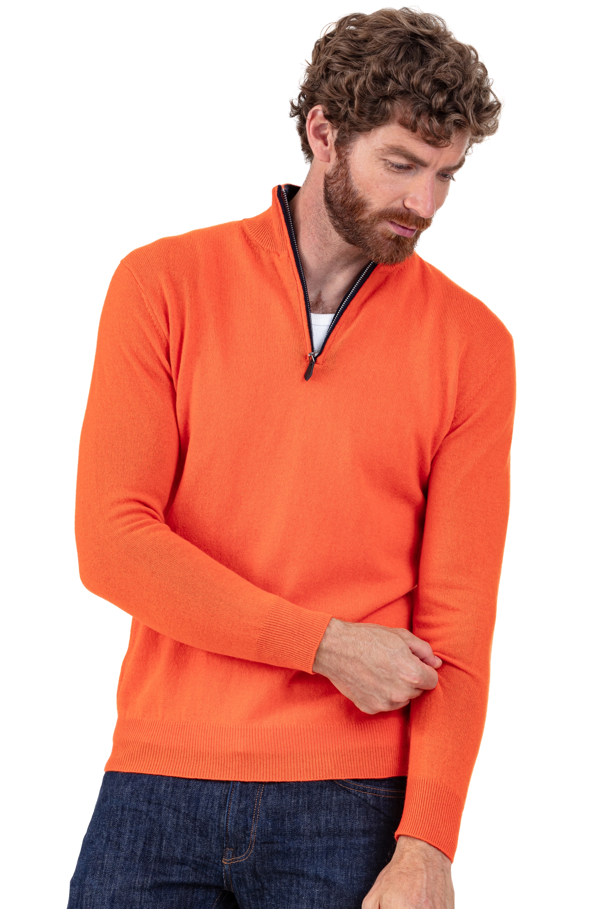Neu in dieser Saison ist die Neu-Interpretation unseres klassischen zweifarbigen Herrenpullovers mit einem farbigen Abschluss entlang des Reißverschlusses. Ein ausgefallener Cashmere-Pullover, der Ihren Outfits einen Hauch von Originalität verleiht.