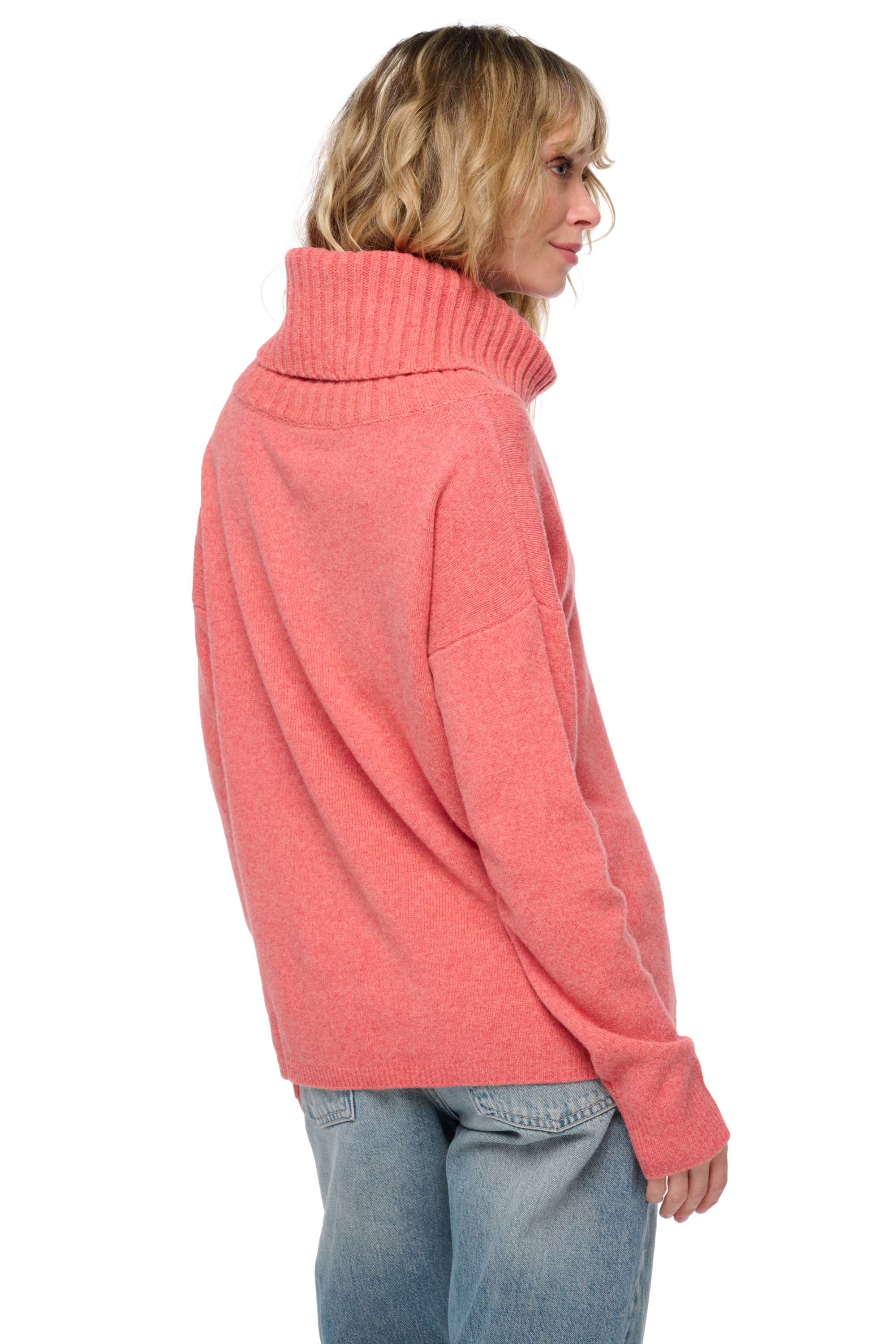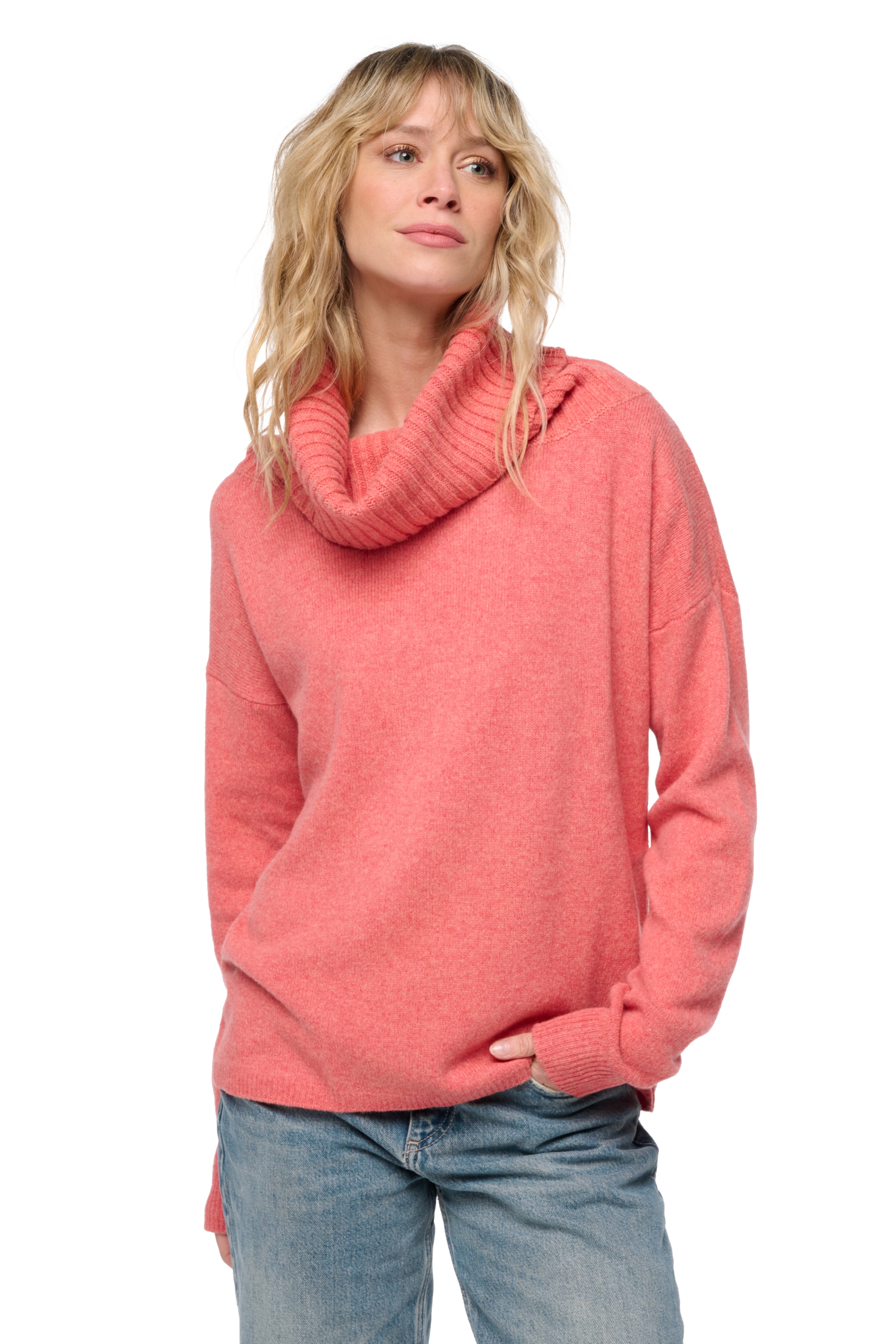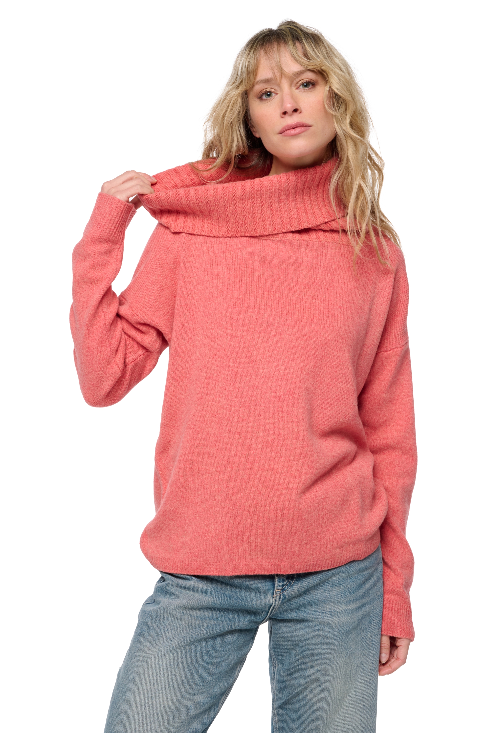 Ein Yak-Pullover mit weitem Rollkragen. Der Rollkragen, in 4-fädigem 2x2-Rippstrick, verleiht diesem Modell ein trendiges und durchdachtes Volumen.